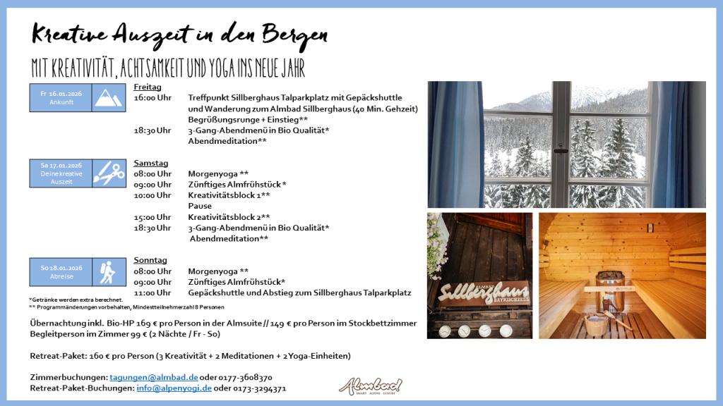 16.-18. Januar 2026 - Kreative Auszeit in den Bergen - Kunst und Yoga